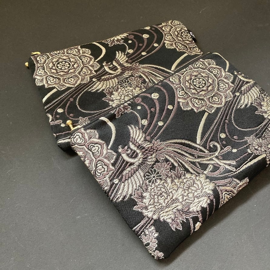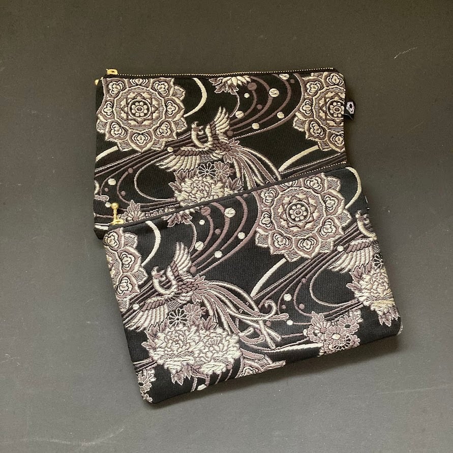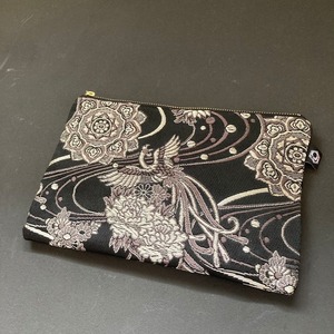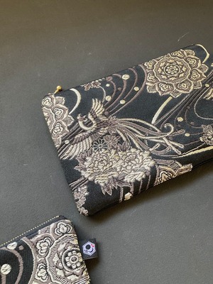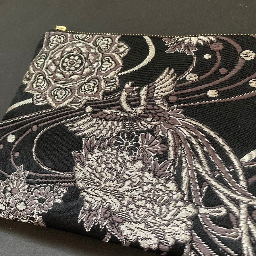 静寂を舞う鳳凰|織り柄ポーチ・小(BLACK×鳳凰)