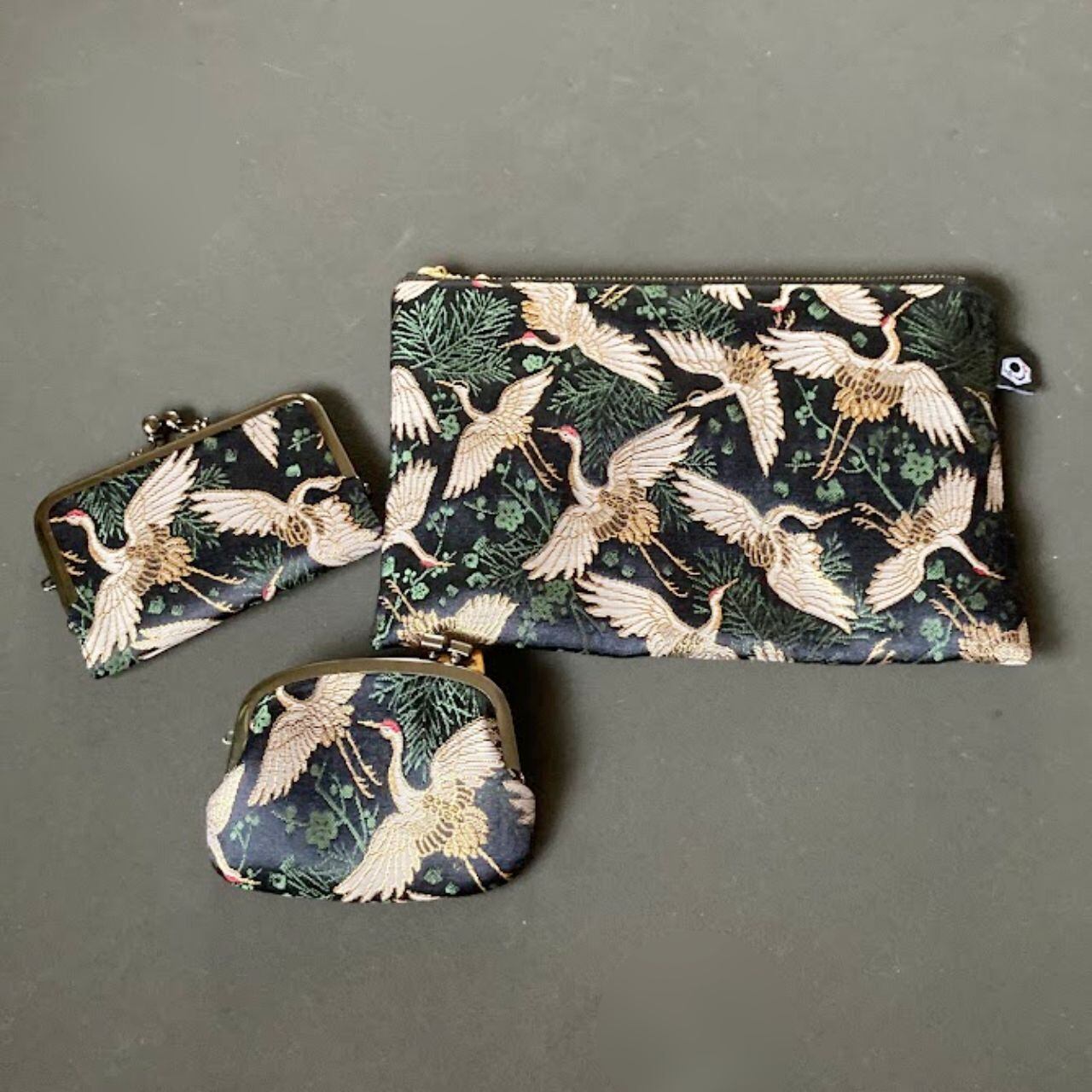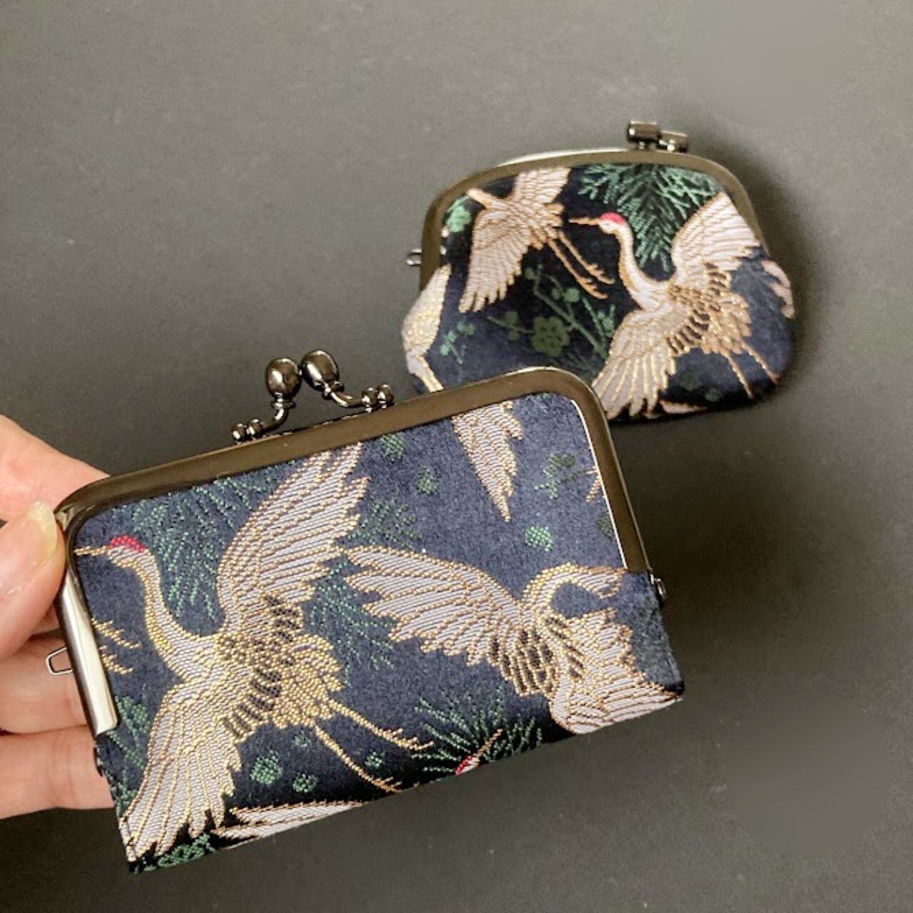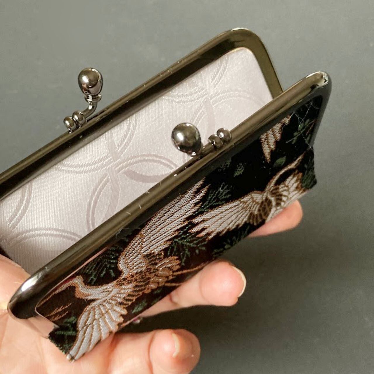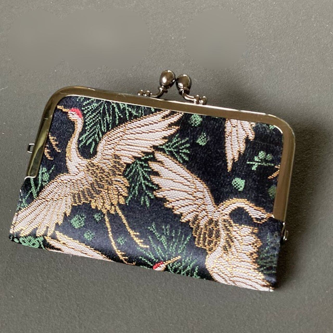 悠々と翔ぶ|織り柄のがまぐち名刺入れ・カードケース(NAVY×鶴)