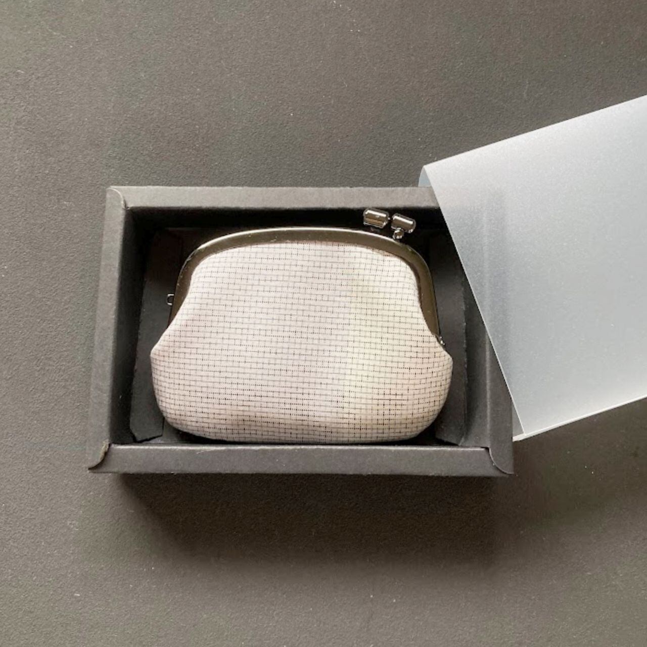 光をまとう白|大島紬のがまぐち≪くし≫(白×細格子)