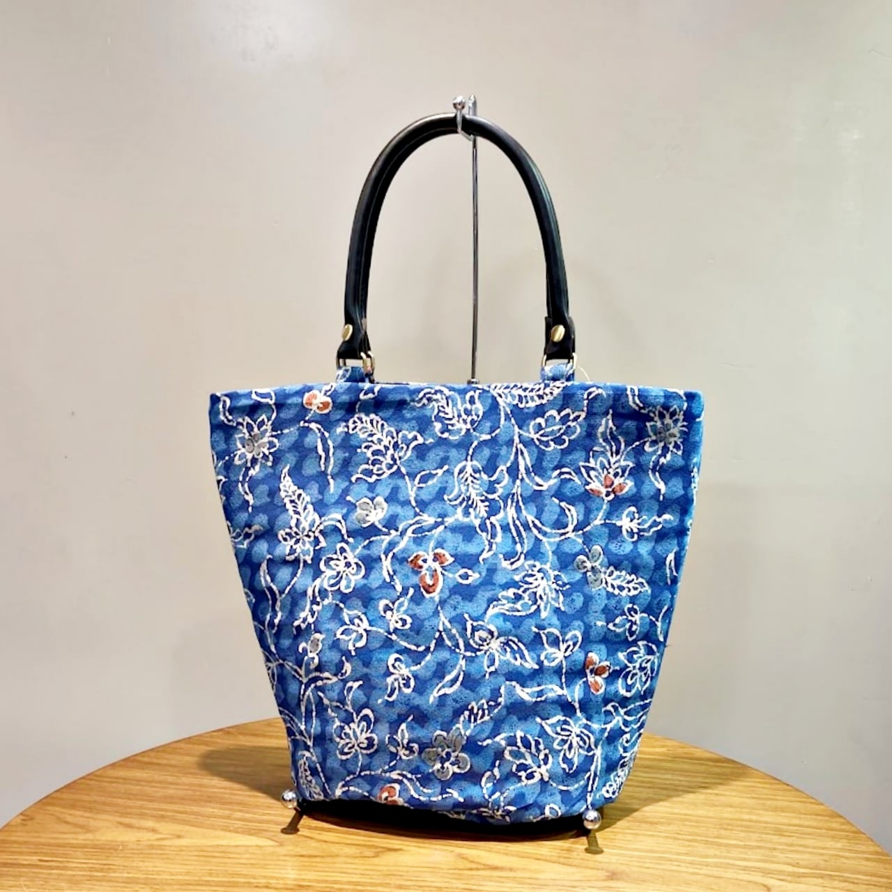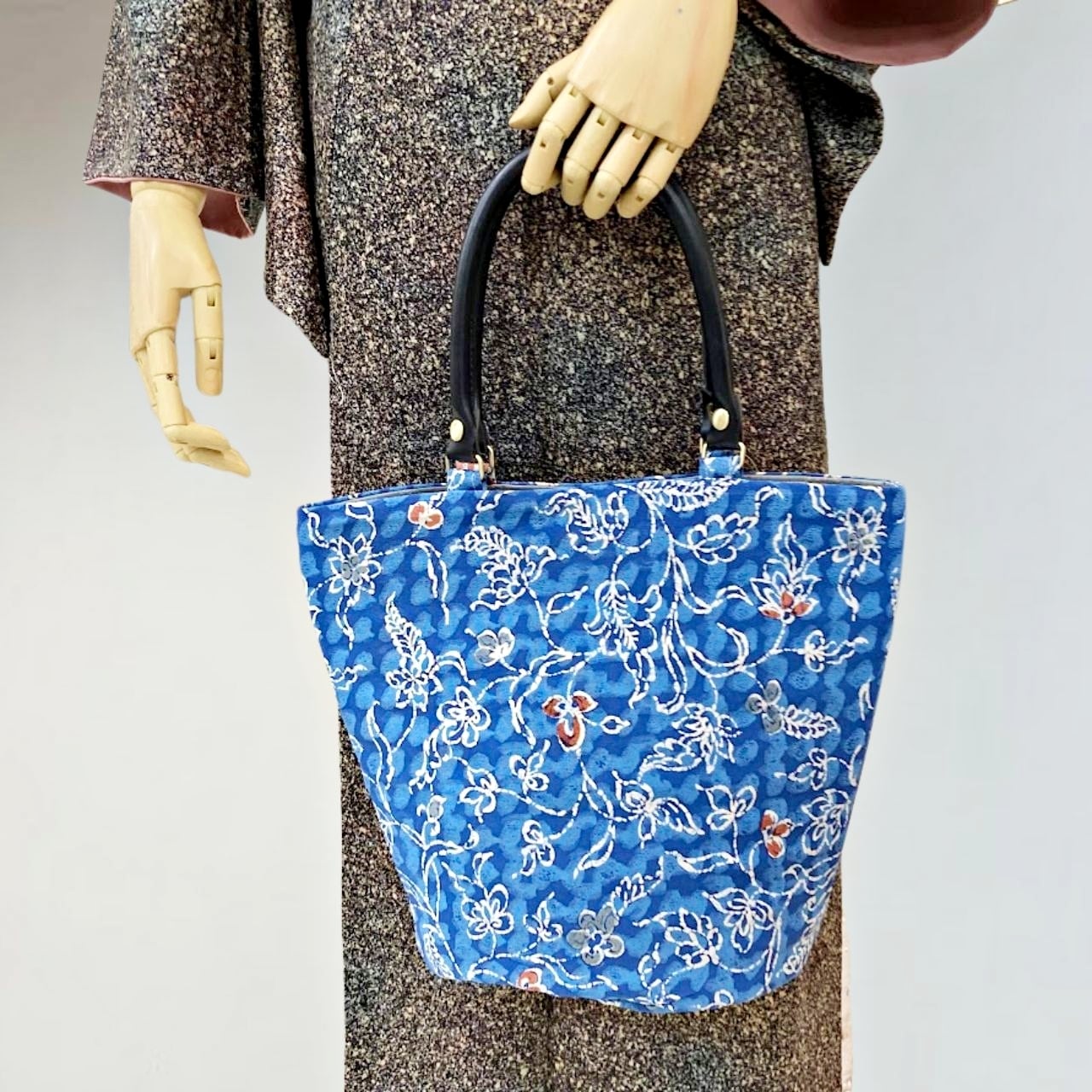 青ろうけつ染め|バケツトートバッグ・軽量・一点もの・着物リメイク