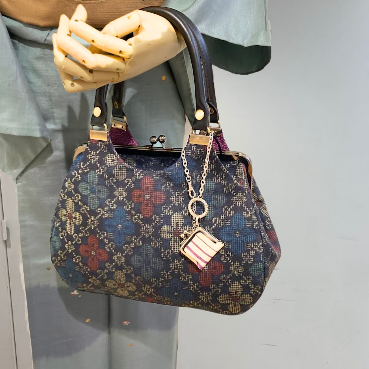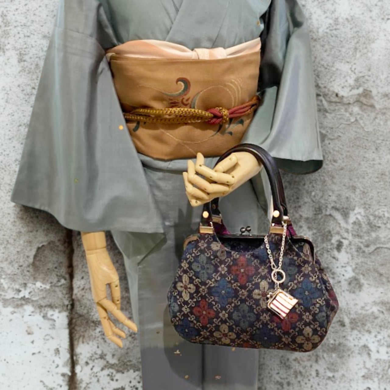 着物を着る日だけでなく、日常の装いにも艶やかな着物地を楽しんでいただけるよう、 普段使いできるバッグに仕立てました。