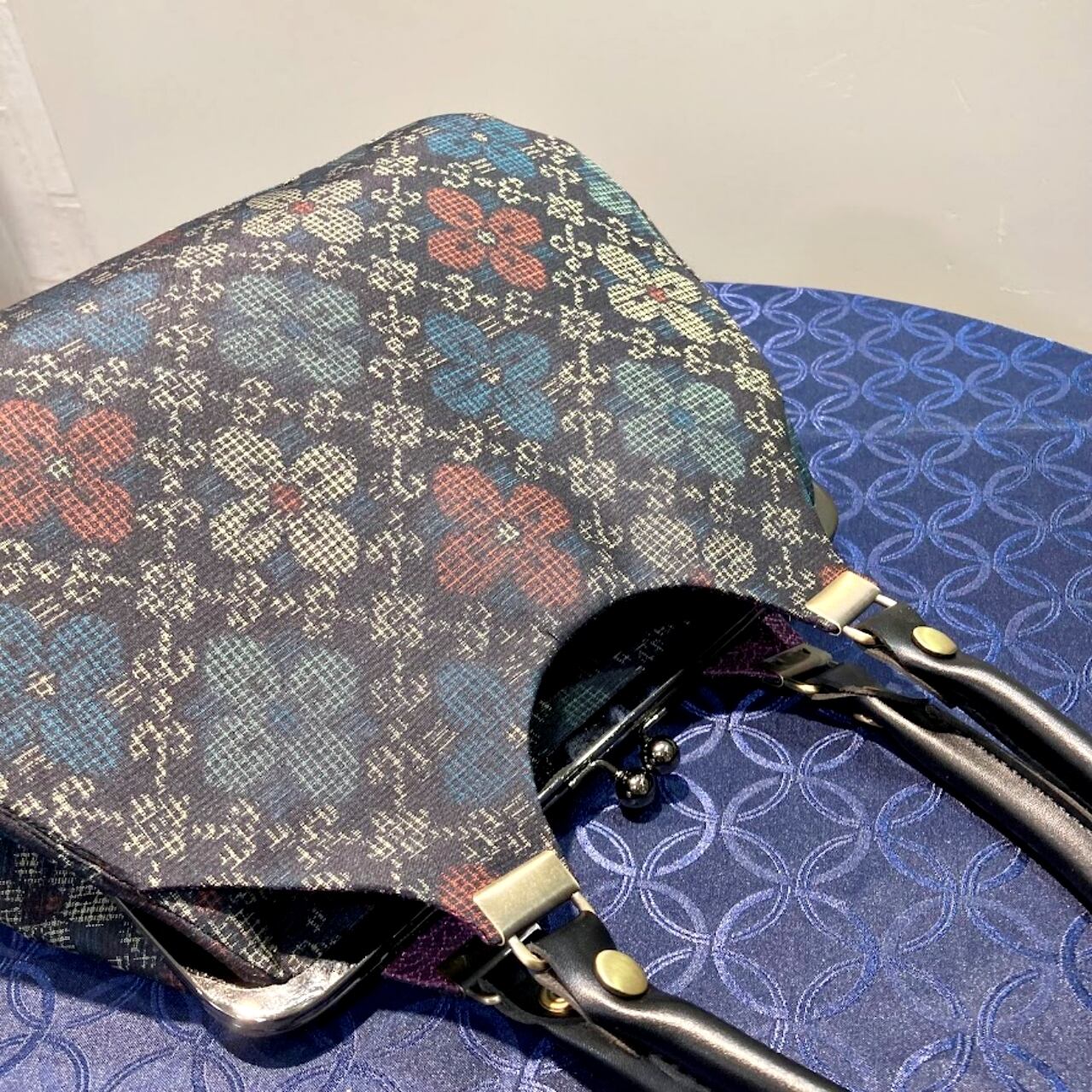 着物地をリメイクした、あおりがまぐちバッグ(一点もの)です。