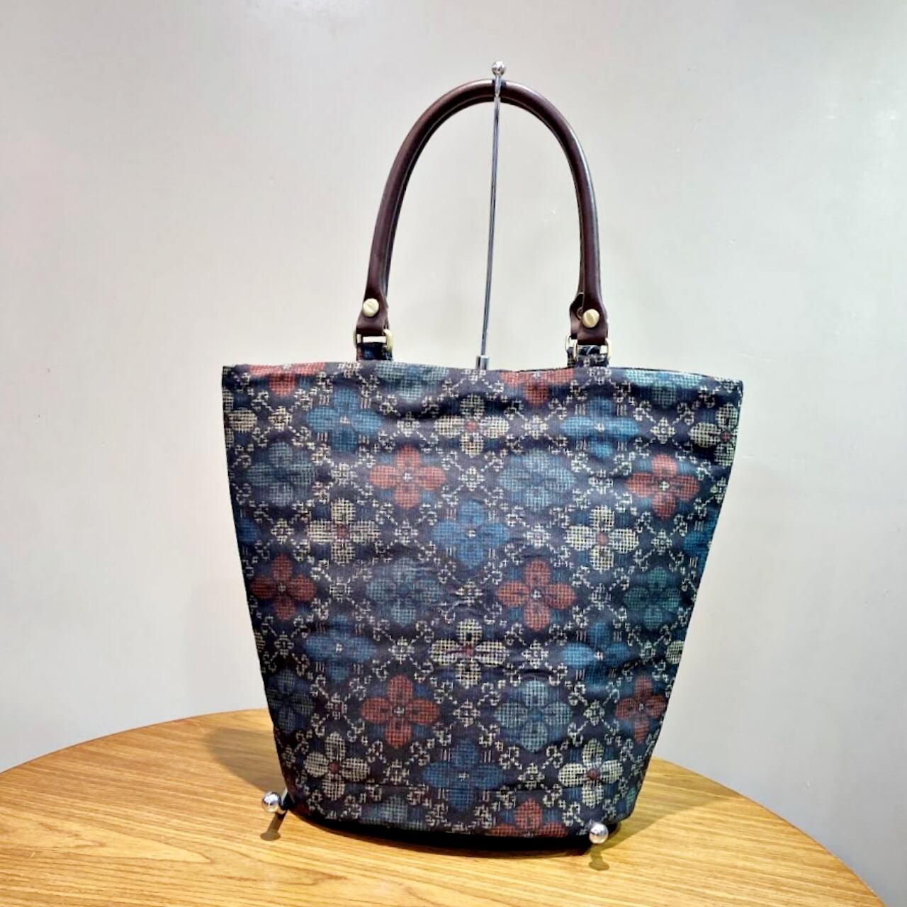 ▶黒小花大島紬|バケツトートバッグ