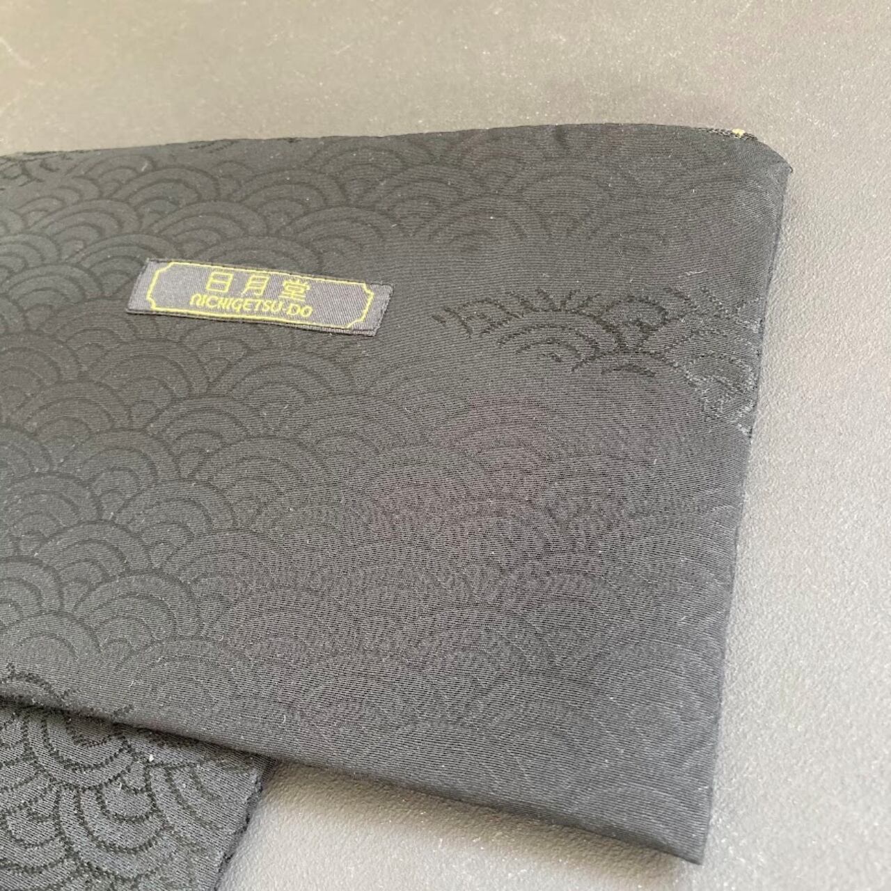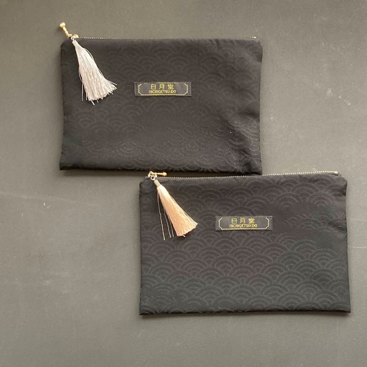 キモノぺたんこポーチ 青海波・BLACK 着物リメイク 日月堂オリジナル