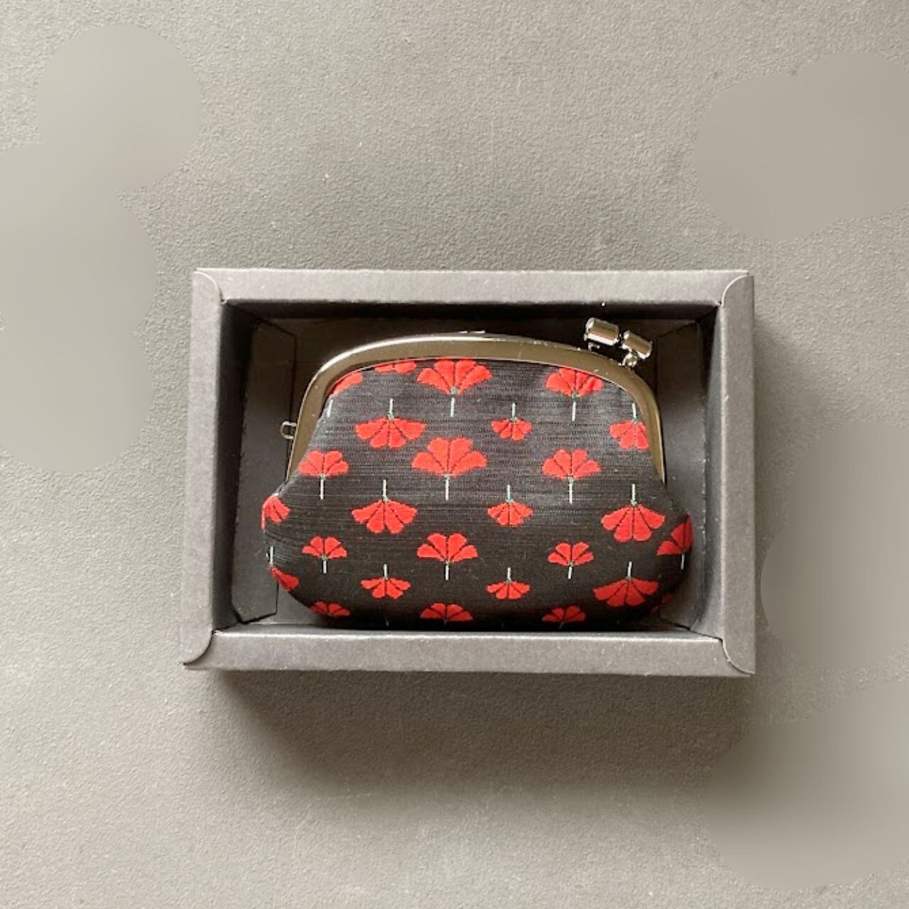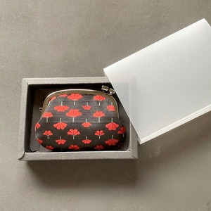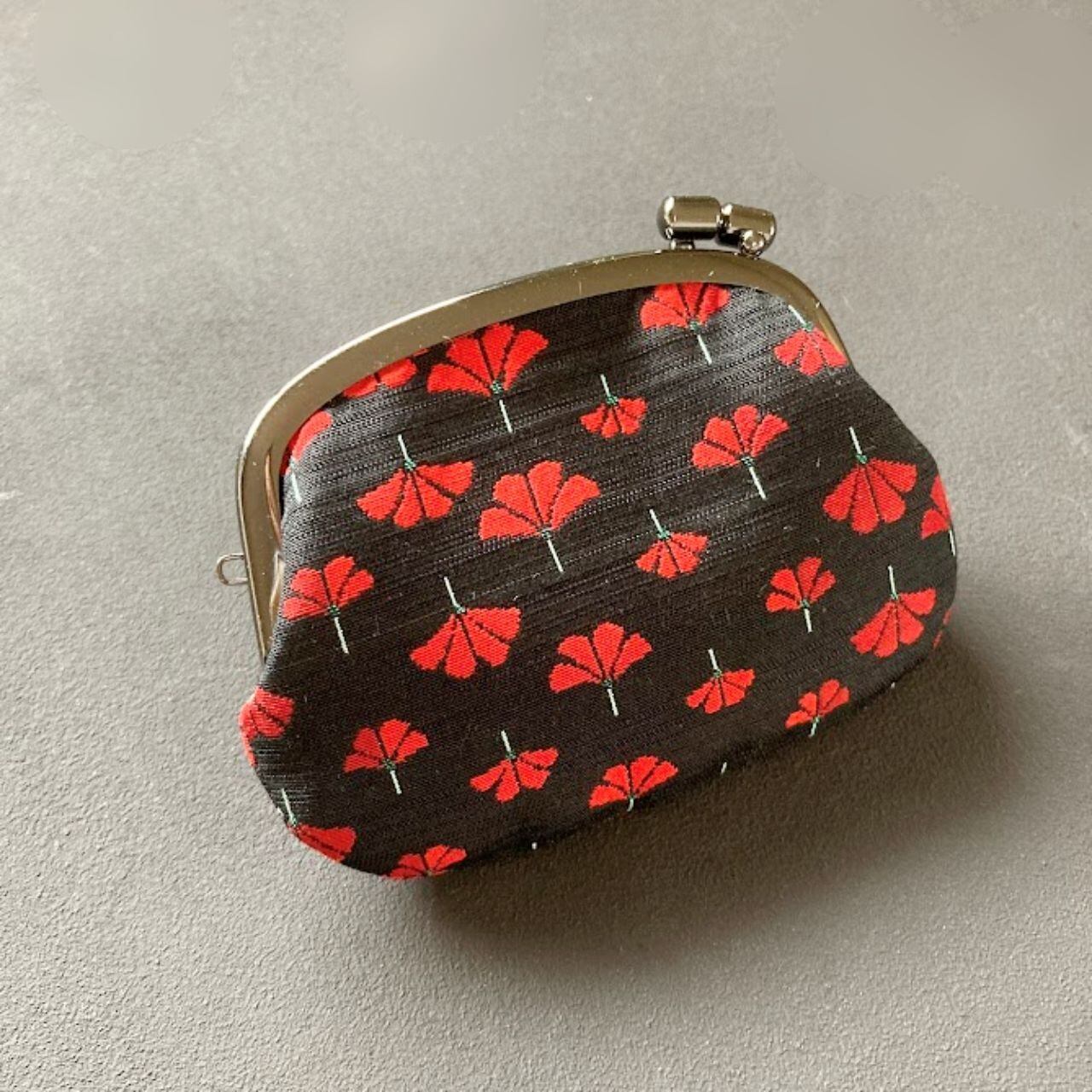 紅花文様|着物地のがまぐち ≪くし≫(黒地×赤花)